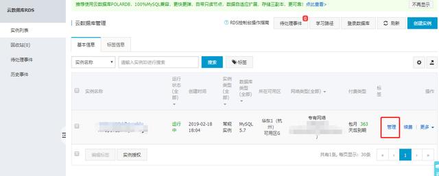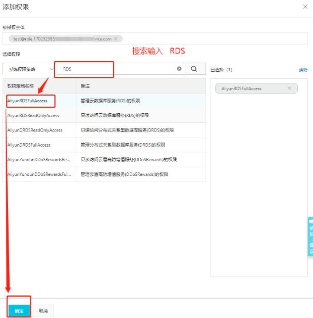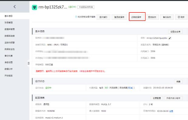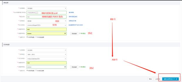 以下操作账号是A账号,就是要将其他账号下的RDS 数据库迁移到该账号下
