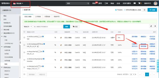 这里是用A账号将新加坡的镜像复制到A账号的杭州地区,