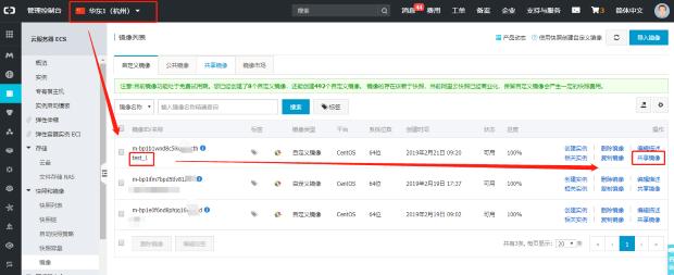 在这里可以看到我们刚刚复制的镜像名称 (我这里test_1,这个是自定义的),然后点击共享镜像
