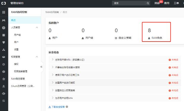 RAM 访问控制 https://ram.console.aliyun.com/overview