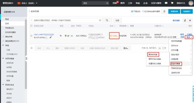 点击共享镜像,然后选择刚刚共享过来的镜像(test_1) ,然后点击最下方的确认更换(这里截图没有截到)