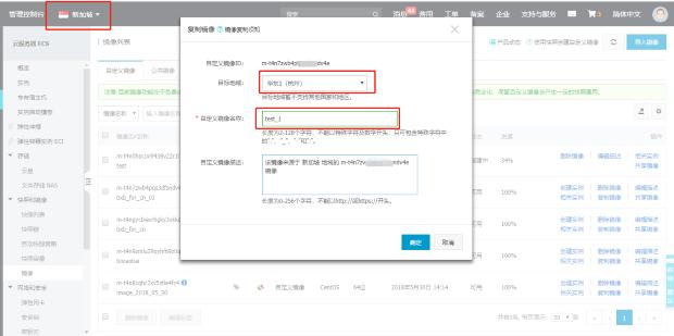 (说明:为什么要复制镜像,因为要将镜像共享到其他账号只能使用同区域内的镜像进行共享,