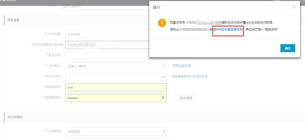 填写 阿里云账号ID 填写完成后 点击账号角色授权