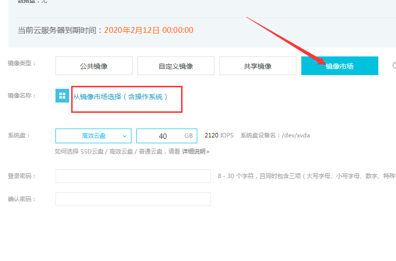 点击【镜像市场】,从镜像市场选择