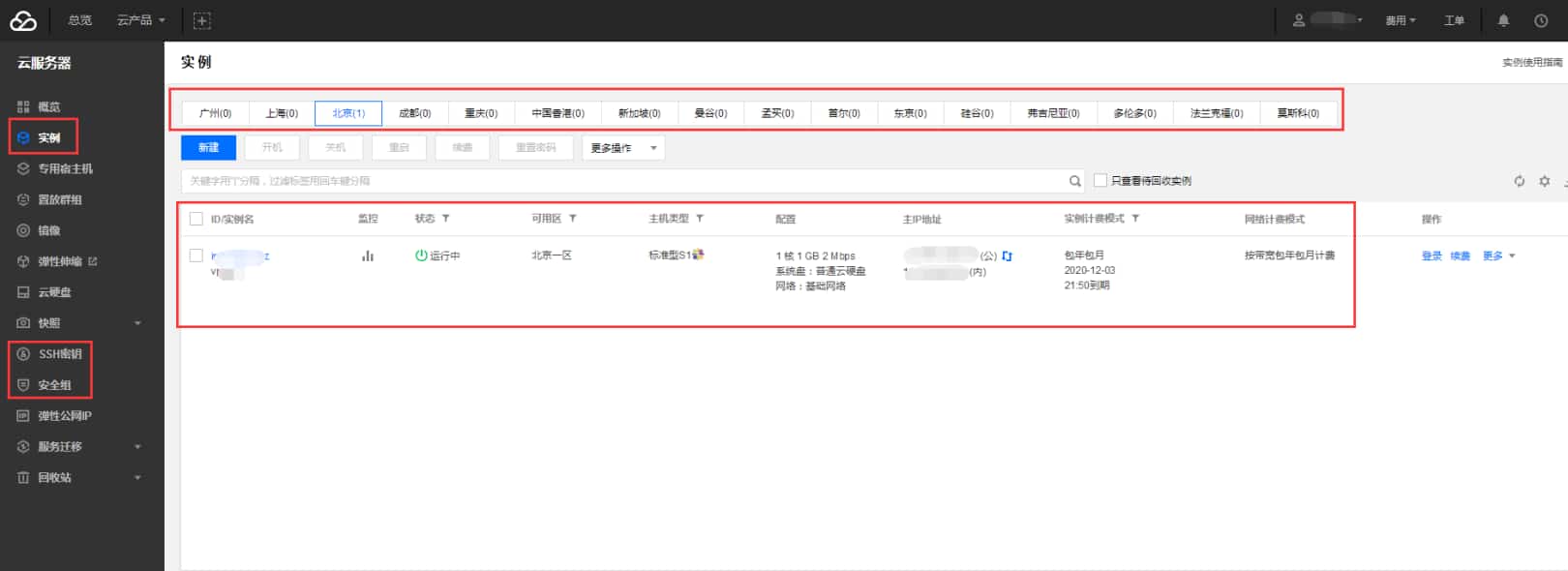 点击实例就看到你已经买到的服务器了;