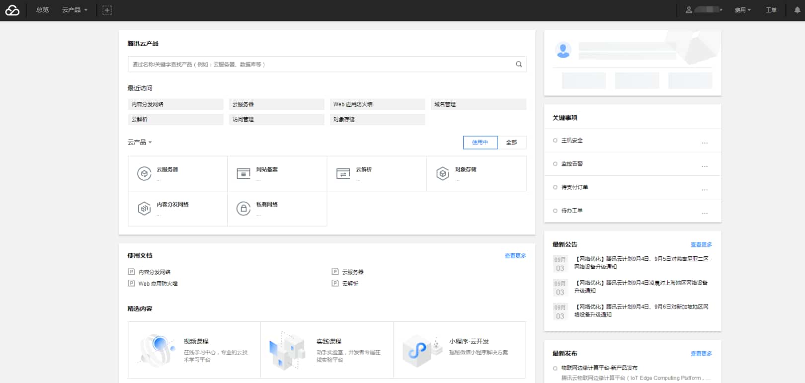 进去看到服务界面,控制台比较容易看懂。搜索你需要的云产品
