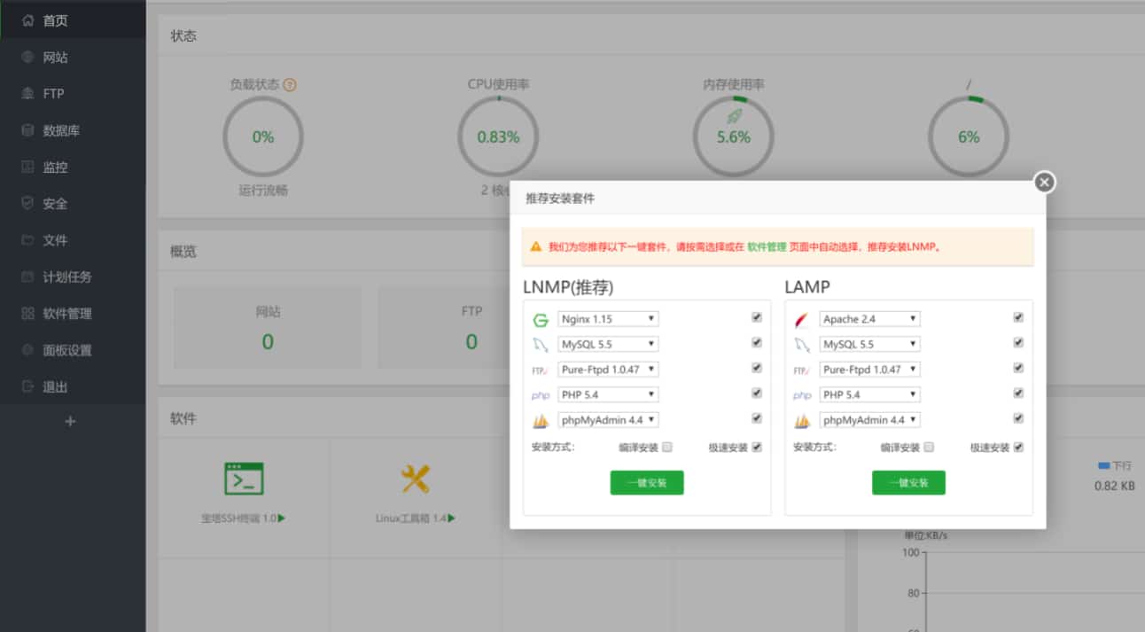 到此面板安装完成,剩下的就是建站工作了。