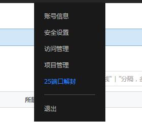 首先在控制台右上角找到自己的名字,鼠标悬浮上边就可以看到一个25端口解封的入口