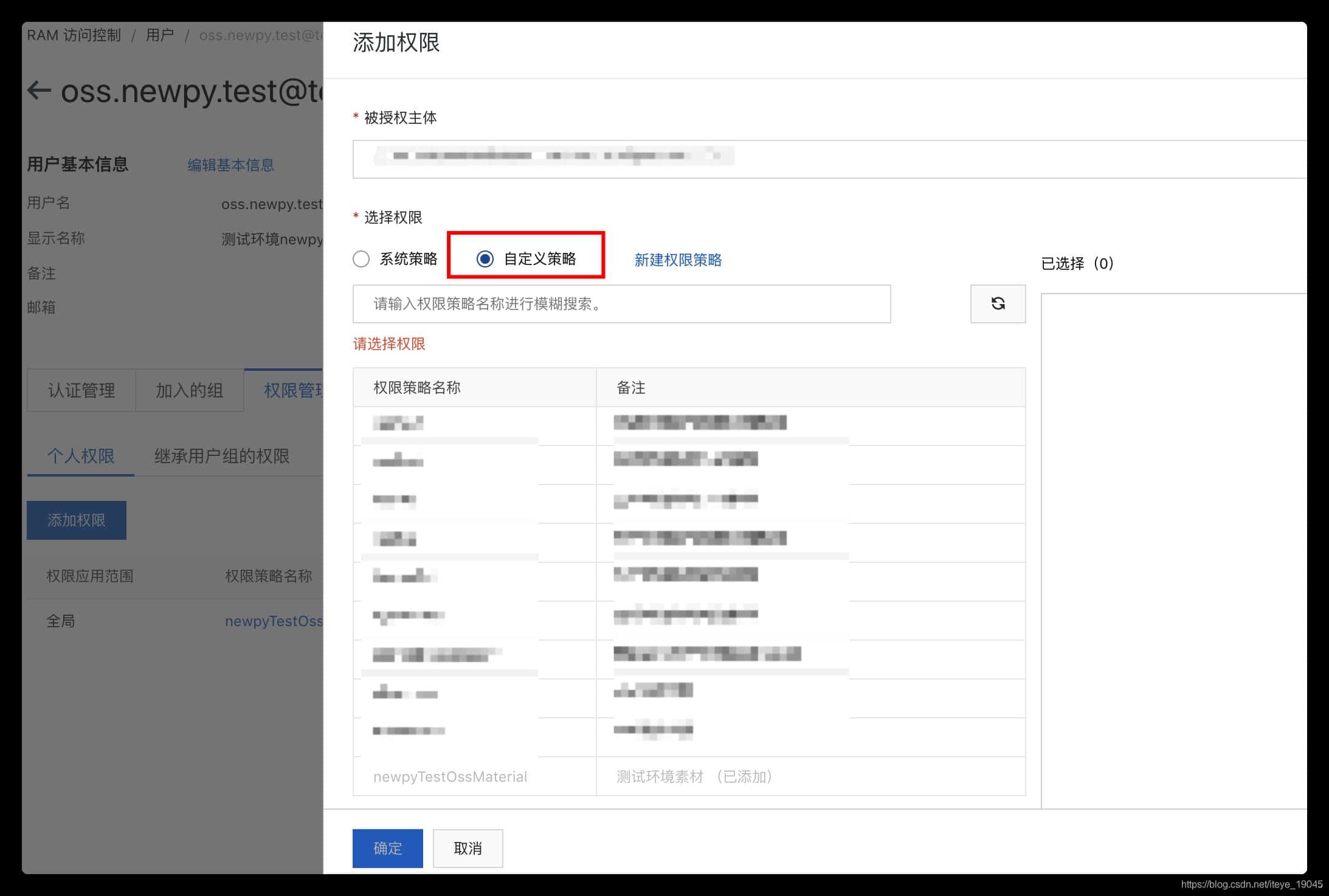 需要将阿里云oss的某个bucket的指定目录授权给测试人员使用,比如指定 myBuket 的 static/material/ 目录。