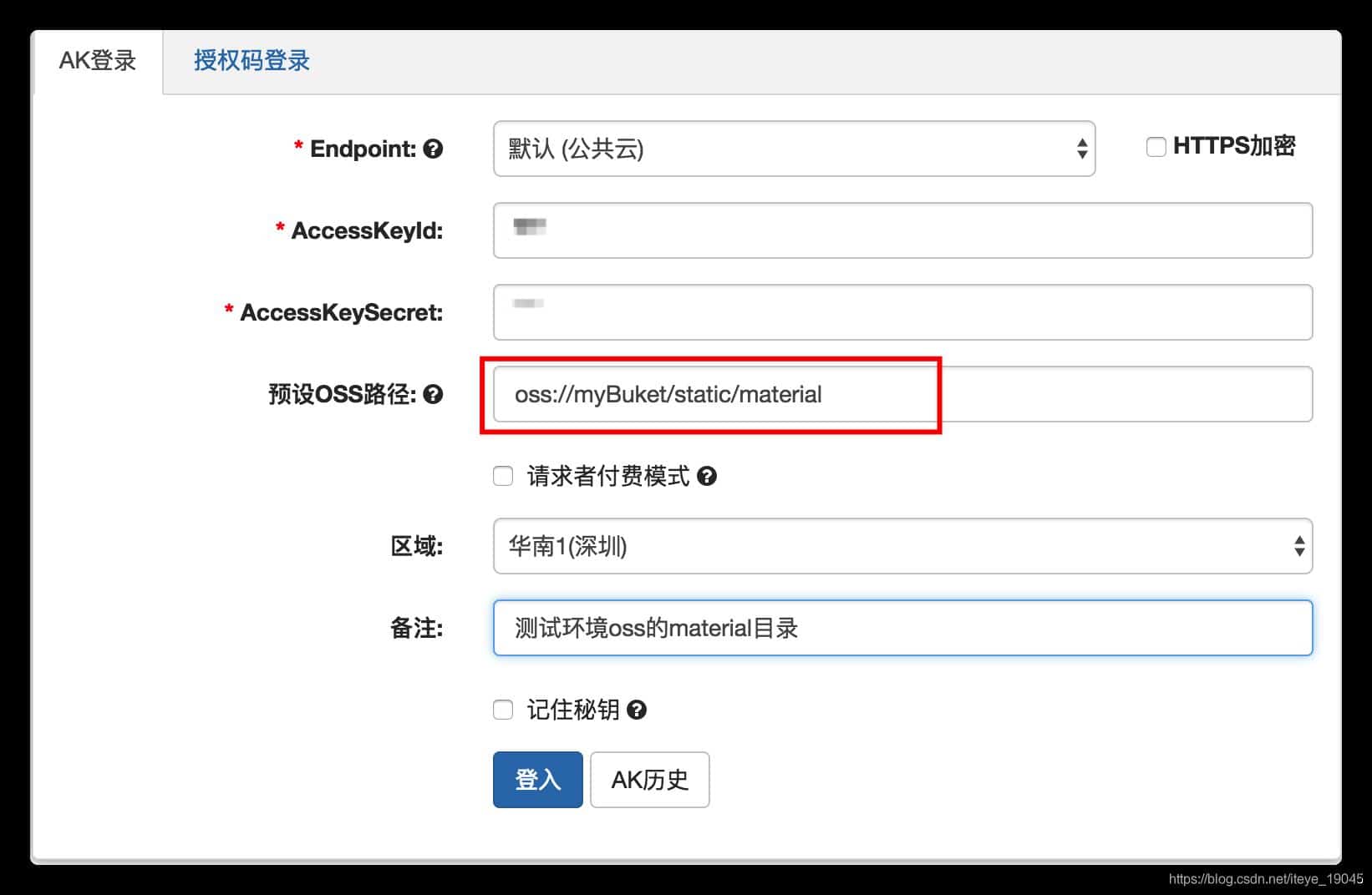预设路径一定要设置刚才的 oss://myBuket/static/material