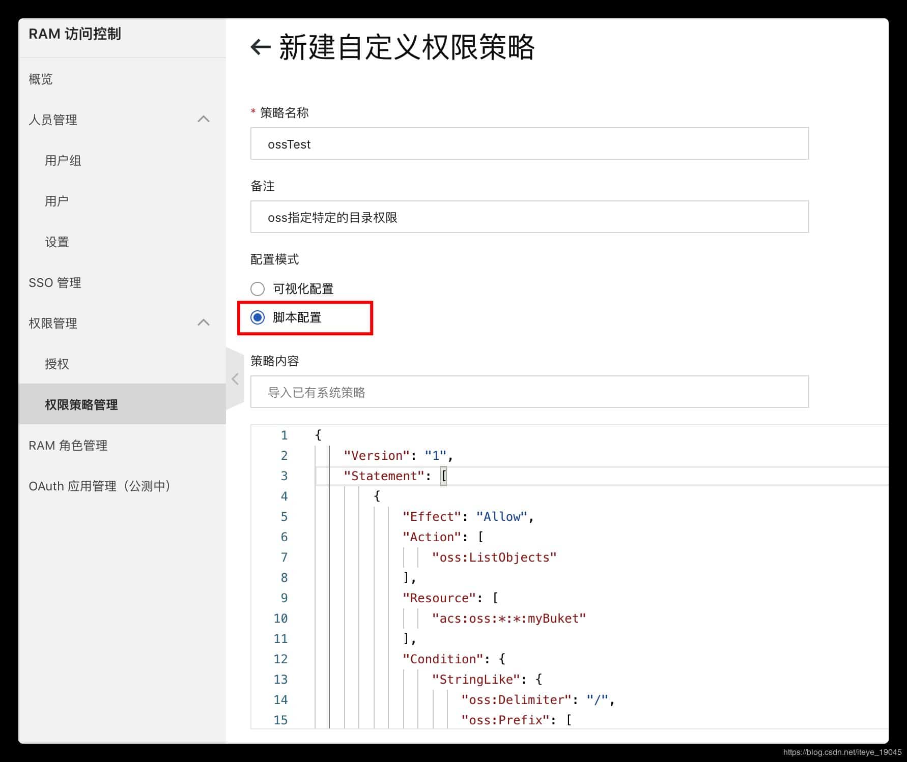 输入名称、备注、选择“脚本配置”,通过自己写脚本来配置权限