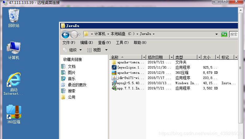 将自己学习盘内的jdk安装包,mysql安装包,tomcat安装包,myeclipse安装包等工具打包复制在服务器c盘内