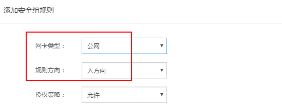 现在这台服务器是专用网络的,那这边的网卡类型的话就内网。如果您是一个经典网络的服务器,那么还需要选择外网入方向来设置。