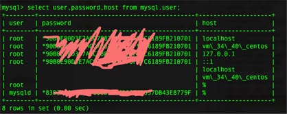 可以看出在root用户下的任何主机是没有password的,因此可以采取两种方式,在远端使用的时候没有密码,显然是不安全的,然后就是为其在远端访问的时候设置密码。步骤如下: