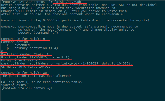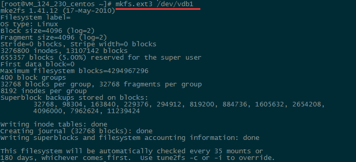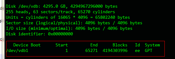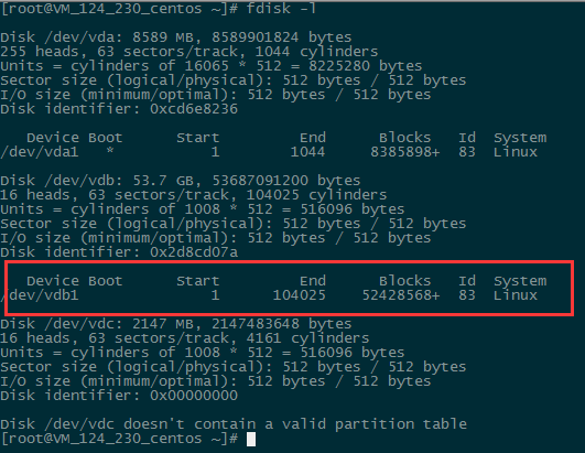 使用“fdisk -l”命令,即可查看到,新的分区vdb1已经创建完成。
