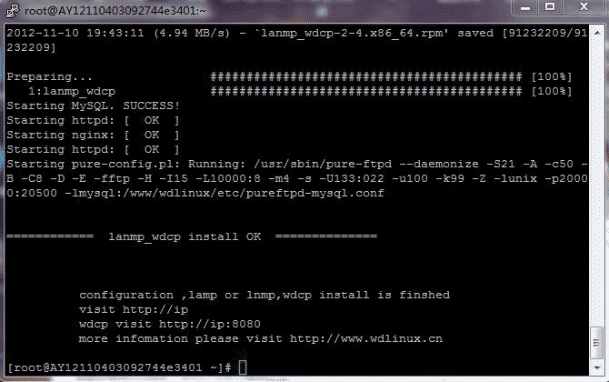 复制下面的命令,下载安装脚本:wget http://down.wdlinux.cn/in/lanmp_wdcp_ins.sh (回车)