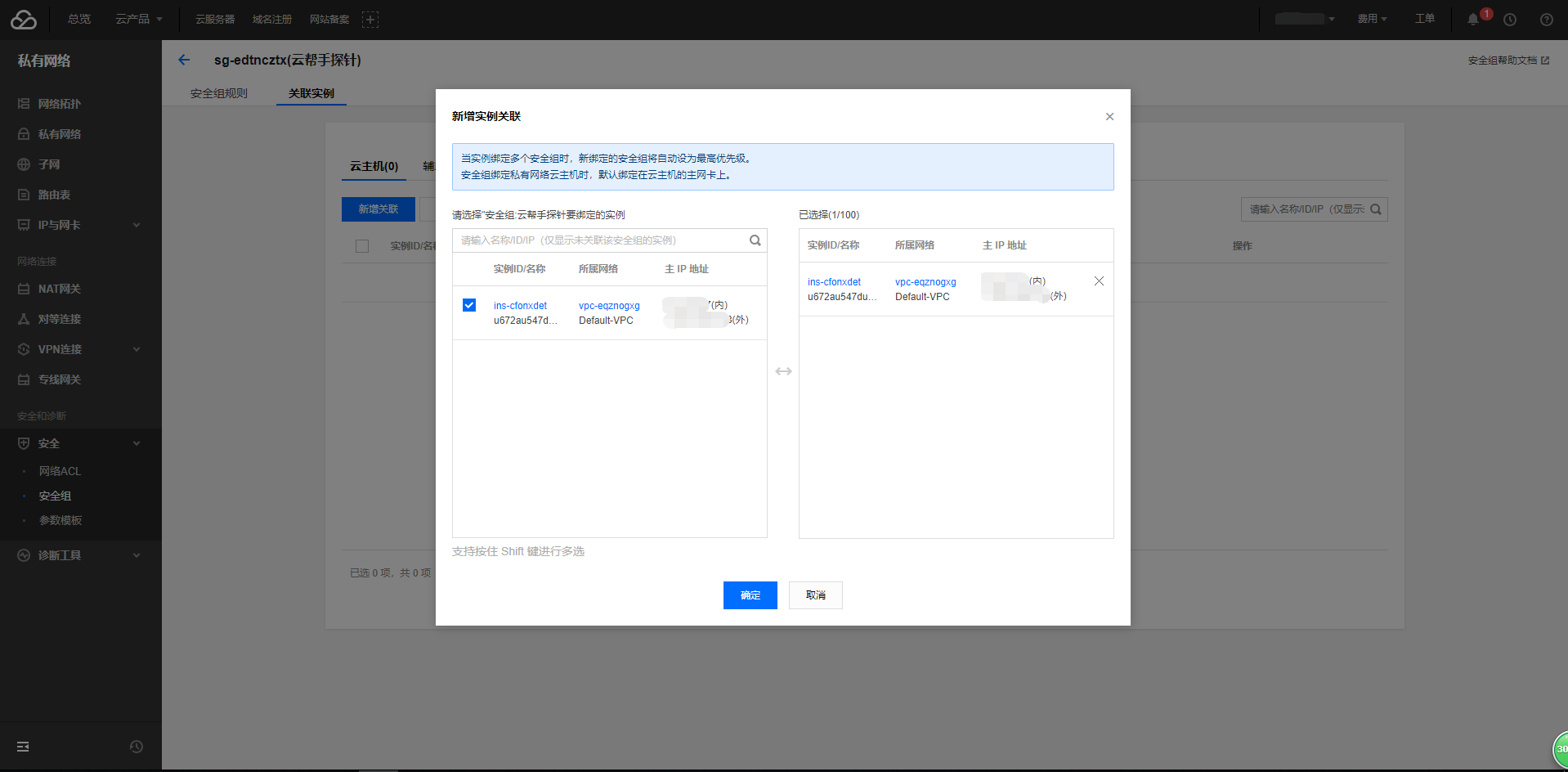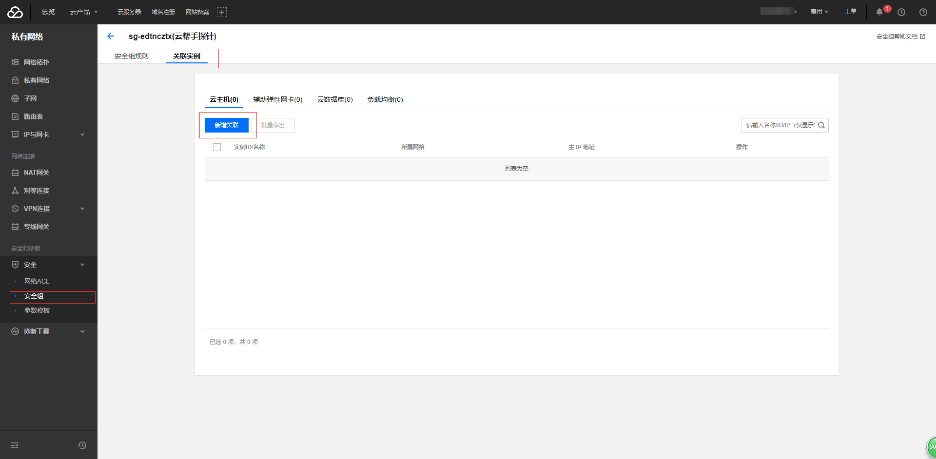 6. 将安全组加入实例