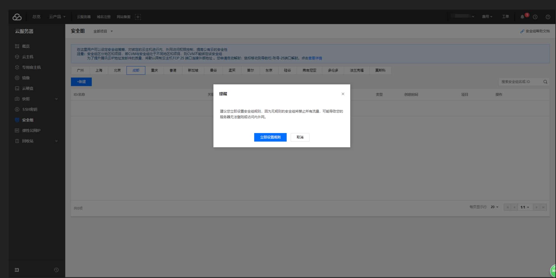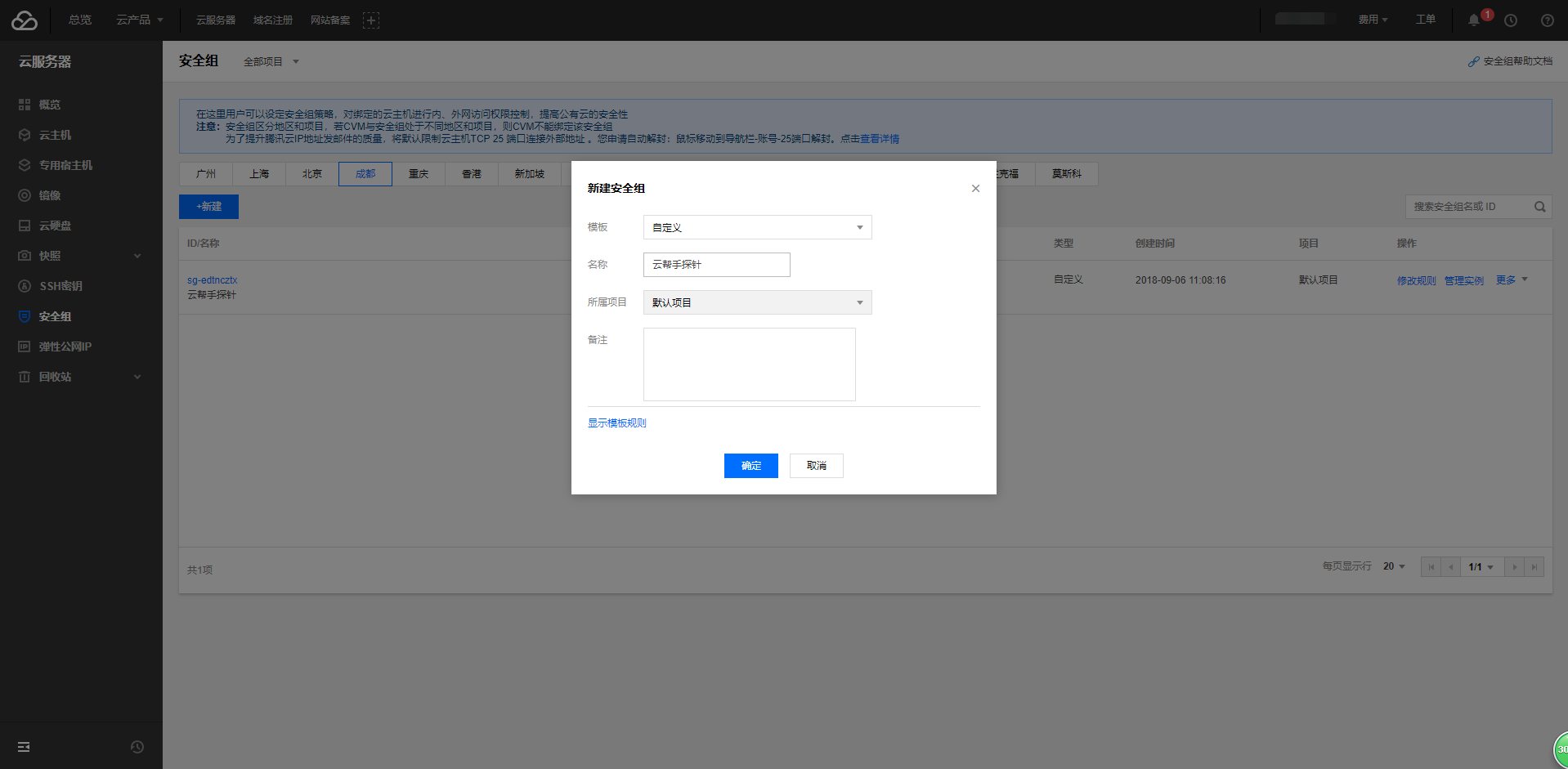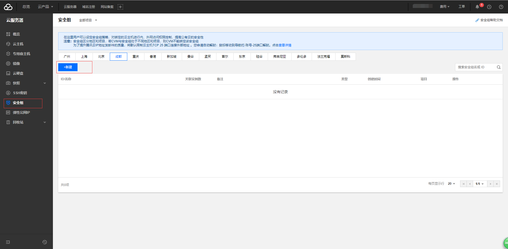 1. 登录腾讯云-进入控制台-安全组-新建