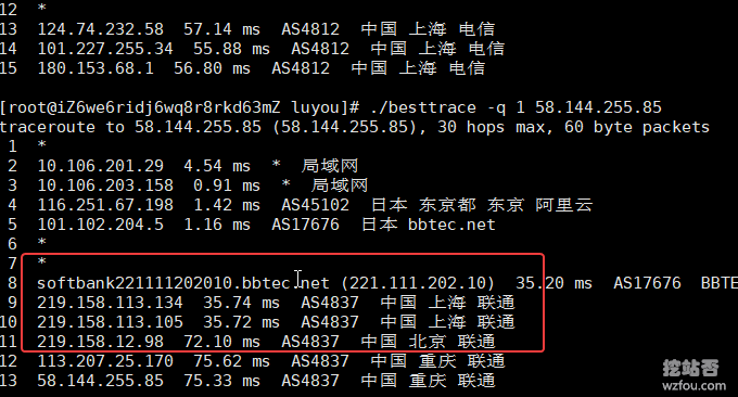 联通用户到阿里云日本VPS走日本软银SoftBank线路。