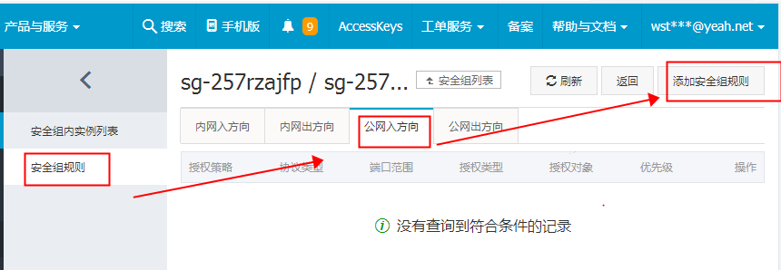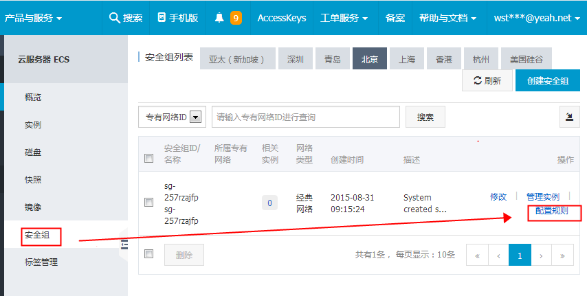 解决:登陆你的阿里云服务器设置,如下面例子,设置端口开发即可以访问