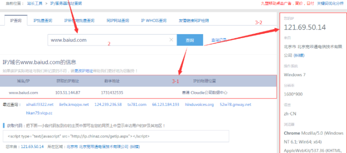 4、后面的IP,就是每个路由节点对应的IP。每个IP详情可以通过站长工具的IP查询进行查看。如下图:
