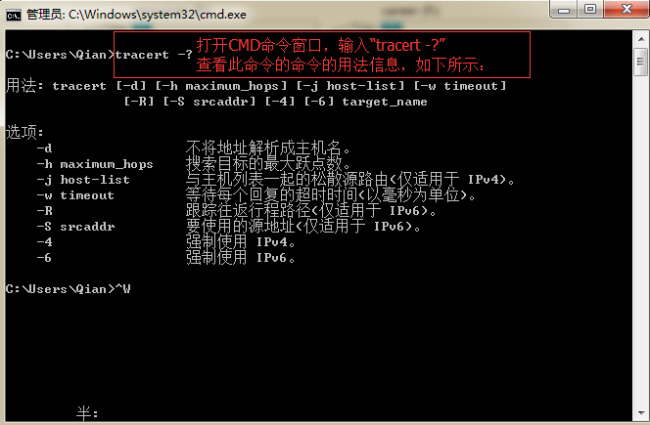tracert命令的格式为:tracert [-d] [-h maximum_hops] [-j host-list] [-w timeout] [-R] [-S srcaddr] [-4] [-6] target_name。
