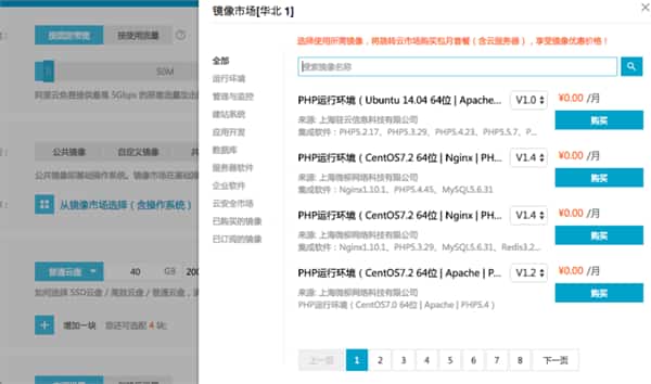 在购置服务器的时候,会选择安装操作系统。使用公共镜像安装的操作系统默认没有所需的如 java,php 等环境。这里我们可以使用镜像市场中带有某些环境的操作系统来简化一部分配置流程(比如选择带有 lamp 环境的 centos6.5 系统)。