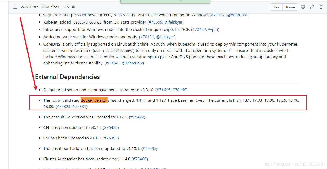 1.3.打开kubernetes版本号文件,ctrl+f搜索”docker version”,便可以查询到所有可用版本号如下截图所示: