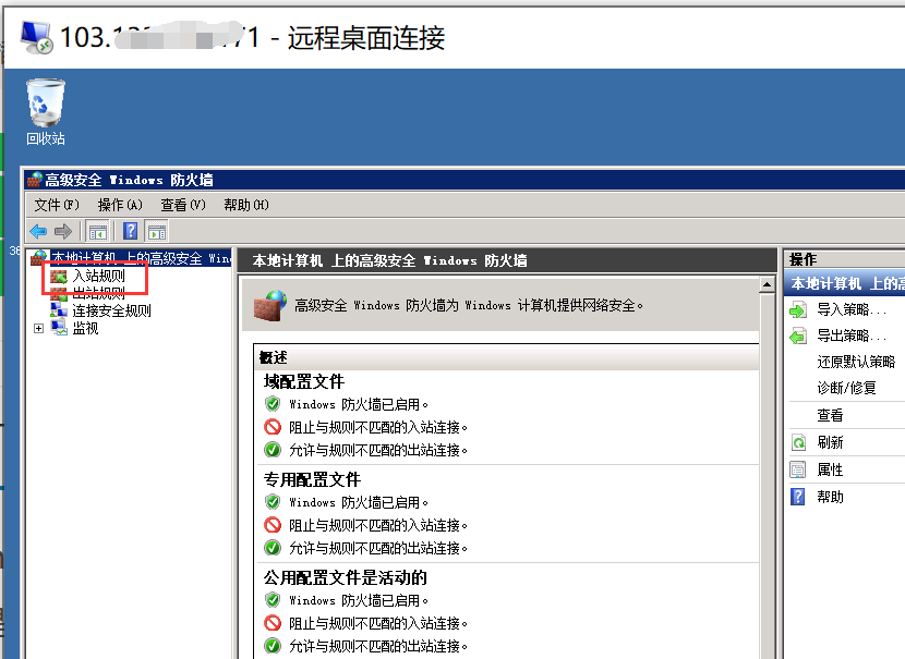 1. 打开Windows高级安全防火墙,点击左侧“入站规则”