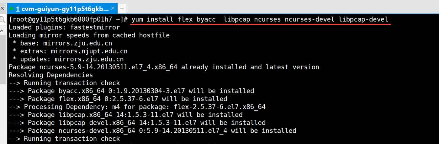yum install flex byacc libpcap ncurses ncurses-devel libpcap-devel