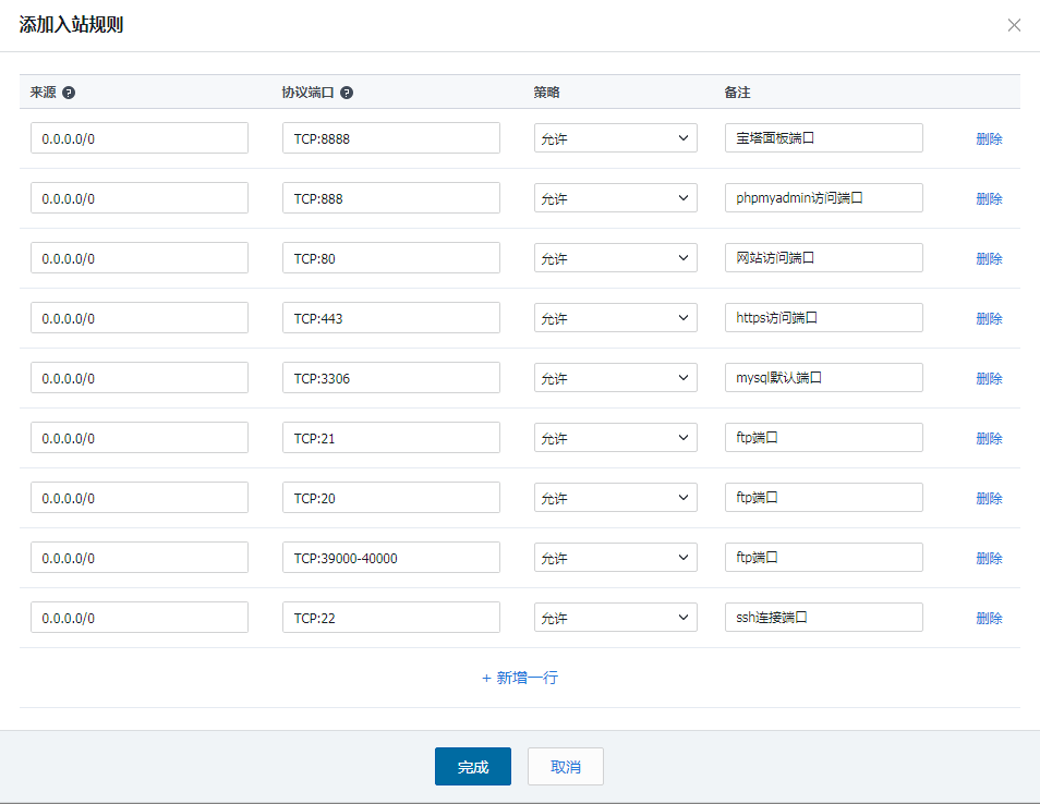 特别提示:宝塔面板端口在安装成功后查看,如在面板后台修改过端口,也需按如下步骤操作,在安全组中放行端口