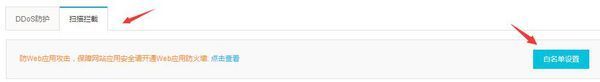 2、切换到『扫描拦截』页面,点击右侧的【白名单设置】按钮,然后点击“添加”链接按钮输入相应 IP 地址即可。