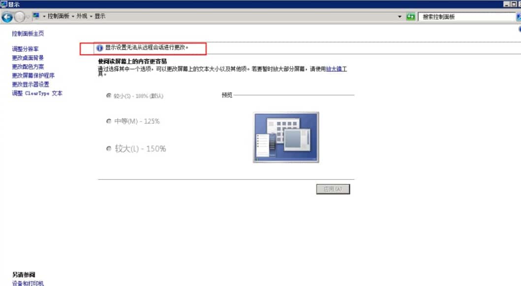 如何解决ECS Windows提示显示设置无法从远程会话进行更改