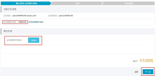 2.单击 更改操作系统,进入更改页面,选中要更改的新操作系统,单击 下一步 。