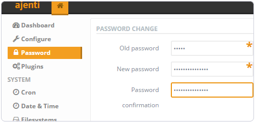 1、第一次使用Ajenti,登录后先在配置中把默认的密码更改了。