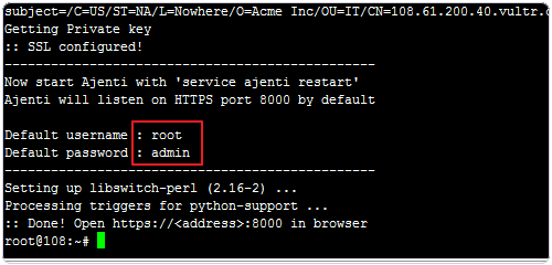 9、Ajenti安装过程不到一分钟,默认的账号和密码是root和Admin。