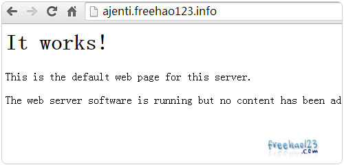 11、打开域名,就可以看到Ajenti显示的域名默认的网站页面了。