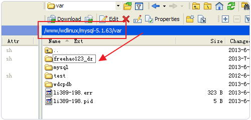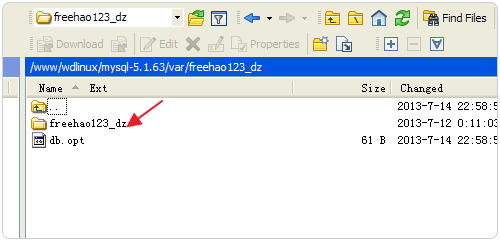 1、WDCP默认mysql数据库文件及日志目录是放在/www/wdlinux/mysql/var,freehao123_dz是我创建的数据库,这是要移动的。