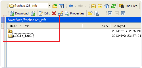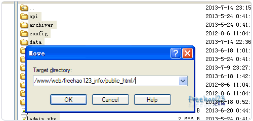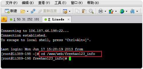 1、这里我要将原VPS上的/www/web/freehao123_info下的public_html目录搬家到新的VPS上,先进入freehao123_info目录中