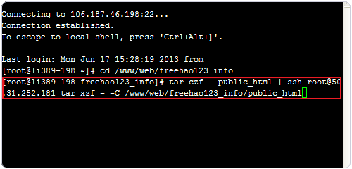 tar czf - public_html | ssh root@106.186.23.172 -p 5678 tar xzf - -C /www/web/freehao123_info/public_html