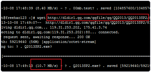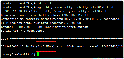 1、这是下载国外cachefly网站提供的100MB测试文件,速度是8MB/s左右。