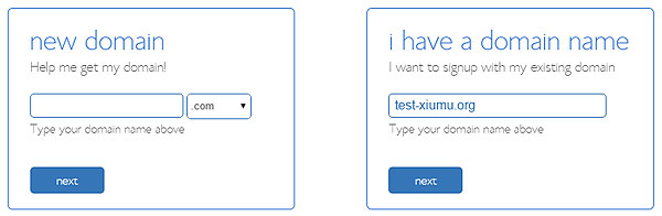 左边是注册新域名,如果你已有域名了,填写到右边的框里,点击Next