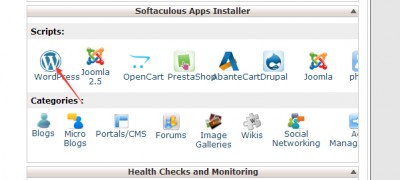 1.登录bluehost主机控制面板,在首页下拉页面找到“Softaculous Apps Installer”栏目,里面有多中应用程序,选择“WordPress”,点击。