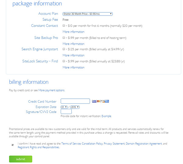SiteLock Domain Security和Site Backup Pro默认是勾选的,两个勾勾去掉,这是BlueHost提供的增值业务,不是我们不需要是价格太高了。