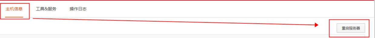 3.尝试重启服务器(主机控制台是通过网络获取的主机信息,注意异常时主机控制台相应较慢,请耐心等待)单击 主机信息 > 重启服务器 。
