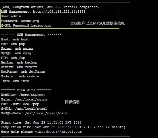 这篇的简单介绍AMH面板就这样,后面我会实战与大家分享使用,安装常规的CMS站点。需要说明一下,开始在安装的时候我用的是一款免费的1G内存方案的VPS,机房速度不是太好,后来我换成目前的一款在洛杉矶的机器,速度好一些。测试机器是256M内存的,不要到时候朋友看到前面的机器IP信息和后面不同,不要认为是虚假的教程,教程是完整的。