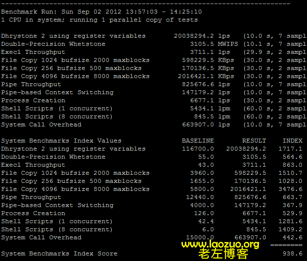 第四,使用专业的UnixBench工具进行测试,具体这款测试软件有什么好处以后小编具体再说,我也是听朋友说这软件是最好的测试VPS性能的,先用上,以后在研究。