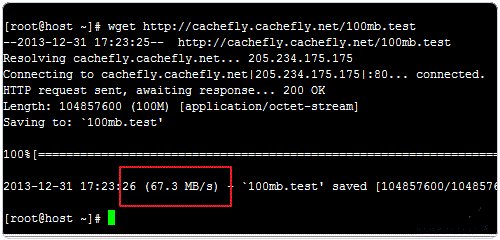 3、这是下载Cachefly的文件速度测试,达到了67MB/s以上。