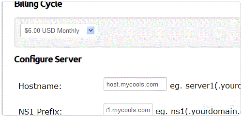 6、选择付款周期,填写VPS主机的域名还有NS,这些都可以随便填写。