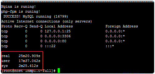 7、在Hostigation VPS上安装编译LNMP,花了25分钟左右,这是计时显示。